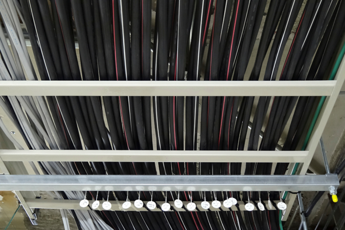 受変電設備や引込開閉器盤を起点とし、建物の規模や使用機器の容量、将来的な増設も見据えたうえで、最適な配線ルート・ケーブル容量を選定。過負荷や電圧降下を防ぐ設計・施工を行います。